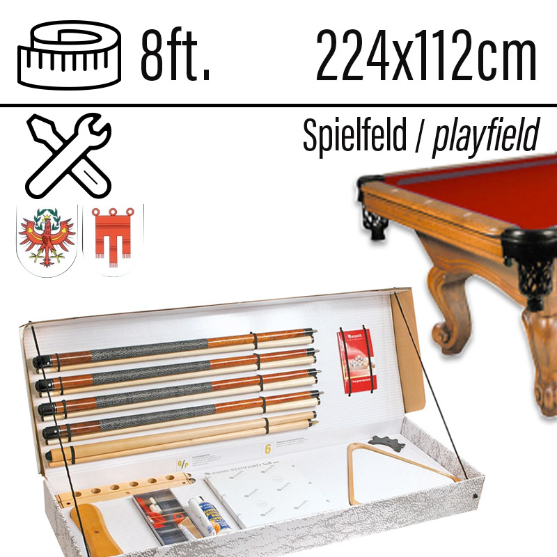 Pool Billardtisch Dragon Carved 8ft Eiche Spielfläche 224 x 112 cm