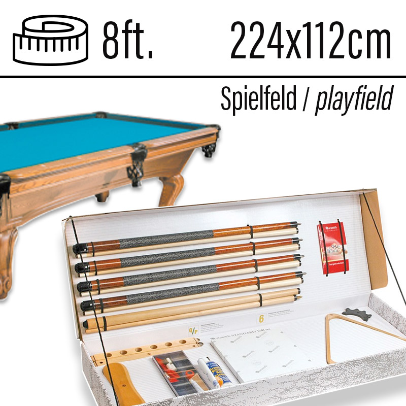 Pool Billardtisch Dragon Carved 8ft Eiche Spielfläche 224 x 112 cm