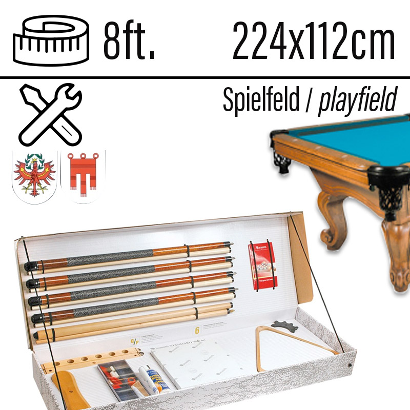 Pool Billardtisch Dragon Carved 8ft Eiche Spielfläche 224 x 112 cm