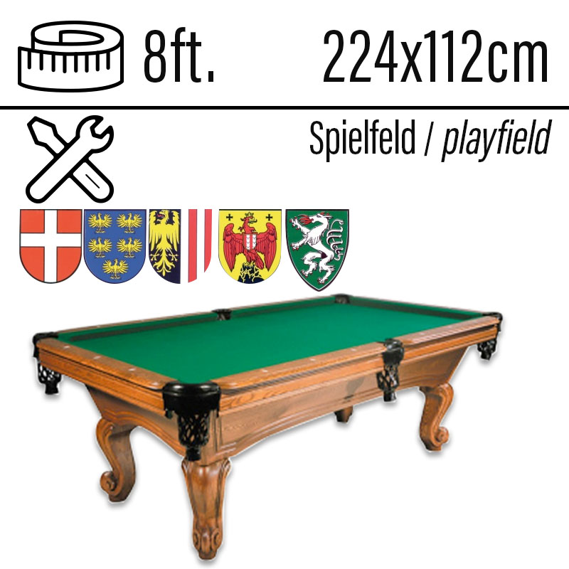 Pool Billardtisch Dragon Carved 8ft Eiche Spielfläche 224 x 112 cm