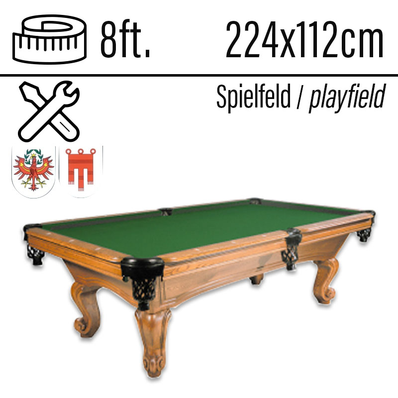 Pool Billardtisch Dragon Carved 8ft Eiche Spielfläche 224 x 112 cm