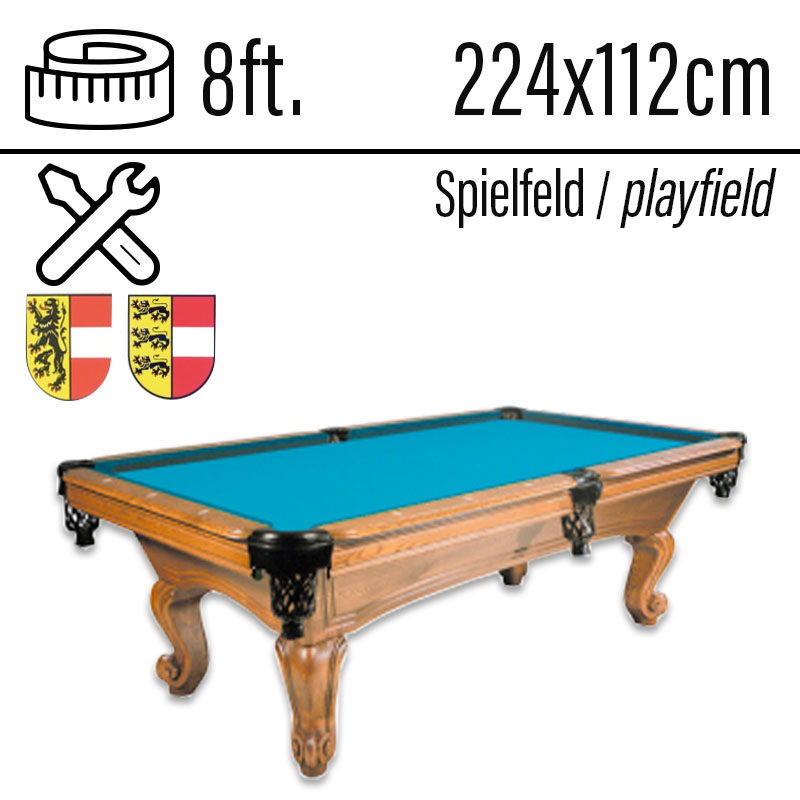 Pool Billardtisch Dragon Carved 8ft Eiche Spielfläche 224 x 112 cm