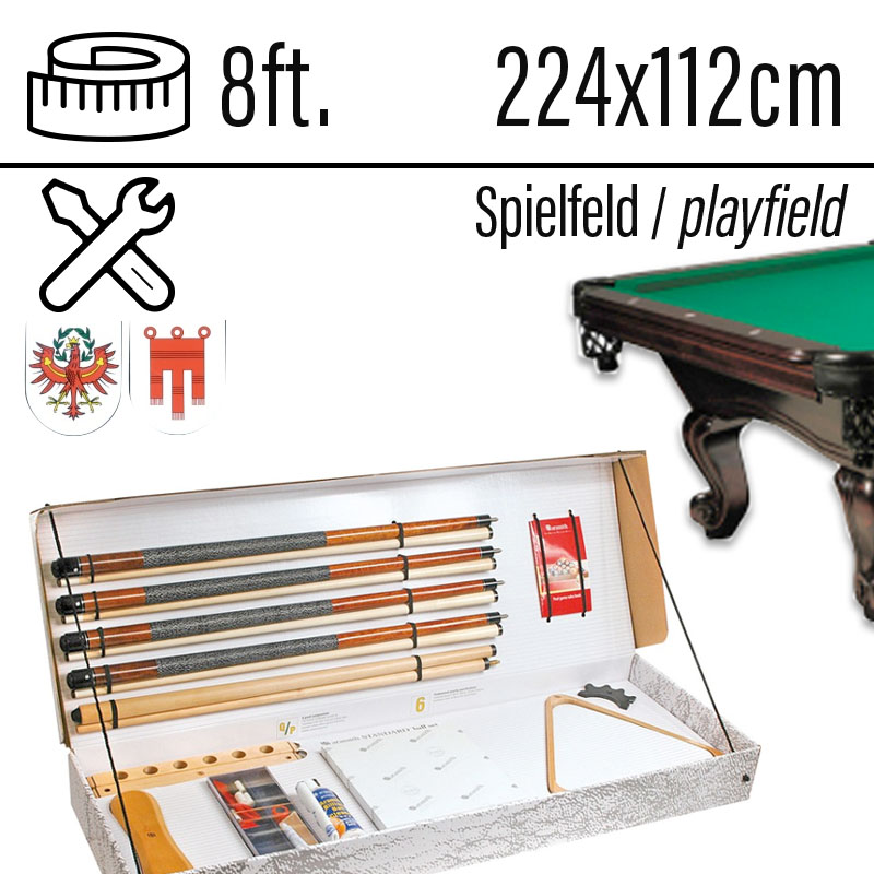Pool Billardtisch Dragon Carved 8ft Kirsch Spielfläche 224 x 112 cm