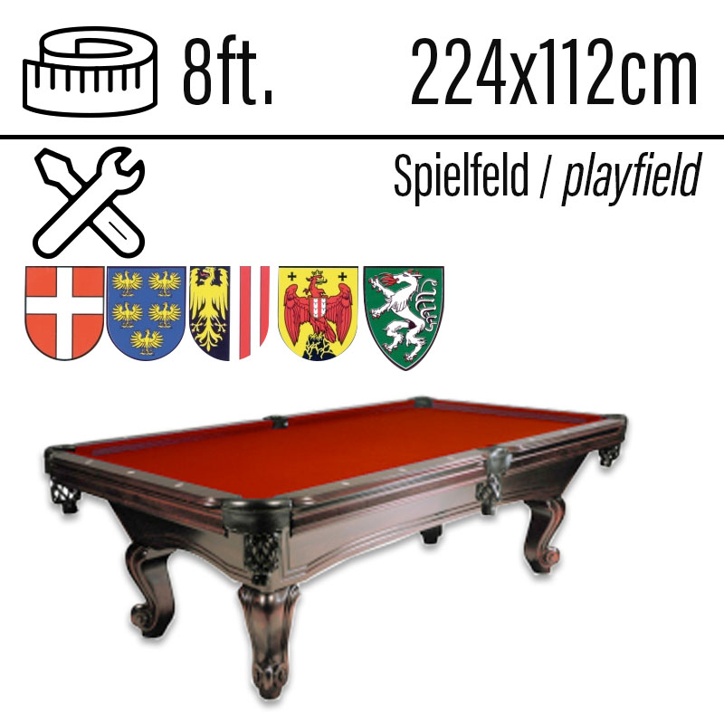 Pool Billardtisch Dragon Carved 8ft Kirsch Spielfläche 224 x 112 cm