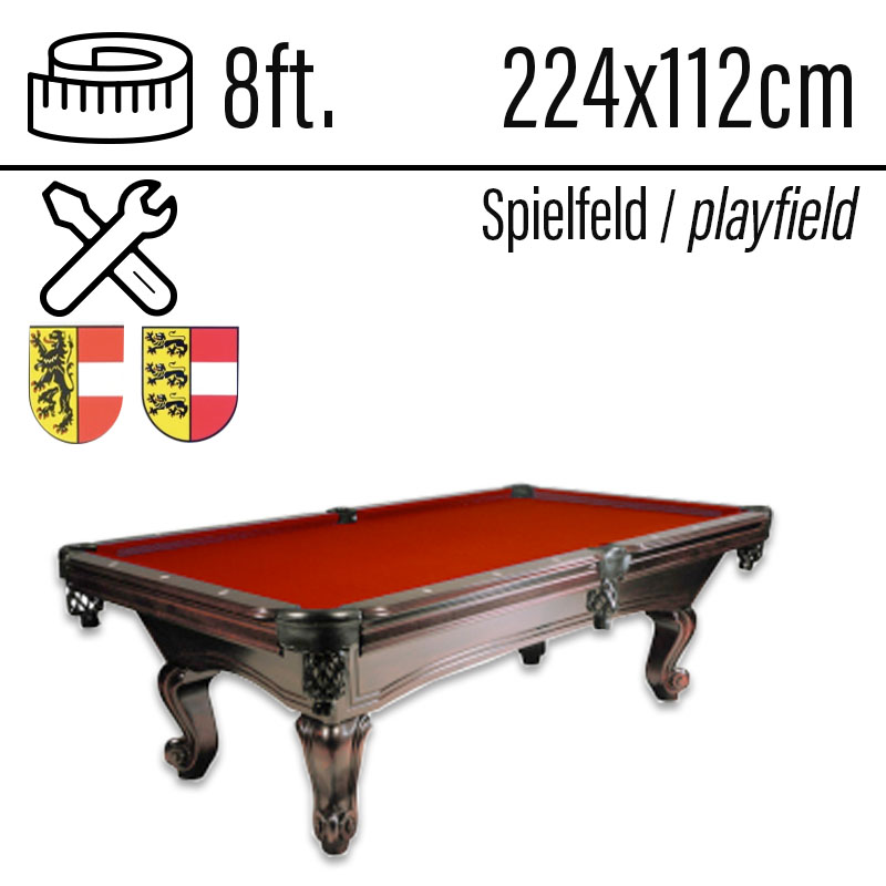 Pool Billardtisch Dragon Carved 8ft Kirsch Spielfläche 224 x 112 cm