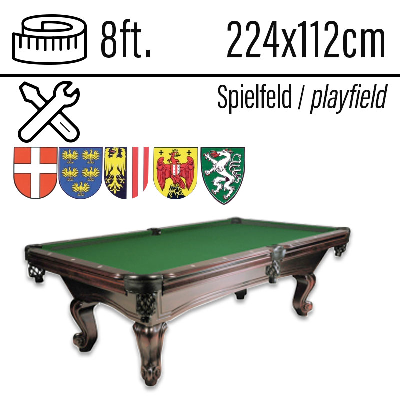 Pool Billardtisch Dragon Carved 8ft Kirsch Spielfläche 224 x 112 cm