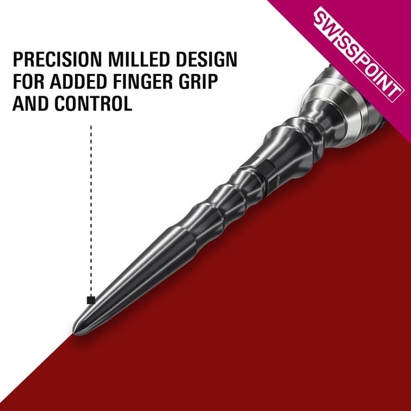 Dank der Kompatibilität mit dem Swiss-Point-System können die Spitzen in wenigen Sekunden mit dem SP Tool gewechselt werden (separat erhältlich). Das innovative konische Gewinde und die speziell entwickelte Nut sorgen dafür, dass die Spitze während des Spiels sicher verriegelt bleibt – zuverlässig, praktisch und absolut matchtauglich.