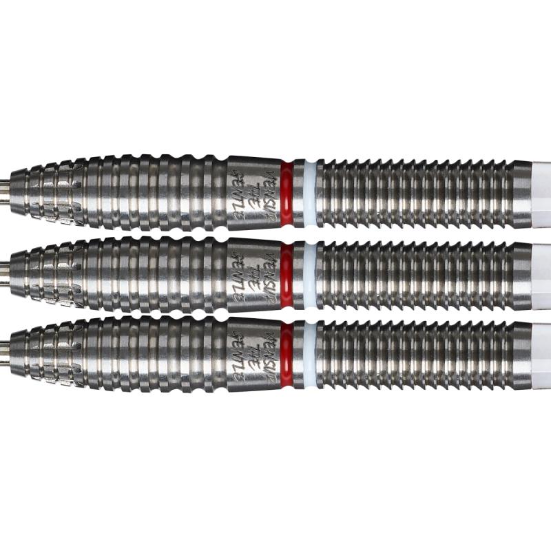 Die Mensur Suljovic 95% – Precision Steel Darts Inspired by “The Gentle” sind auf Kontrolle, Wiederholbarkeit und enge Gruppierungen ausgelegt. 95% Tungsten ermöglicht schlanke, hochwertige Barrels mit sauberer Balance. Der präzise Grip unterstützt einen ruhigen, kontrollierten Release – ideal für Spieler, die Konstanz über „Gewaltwürfe“ stellen.