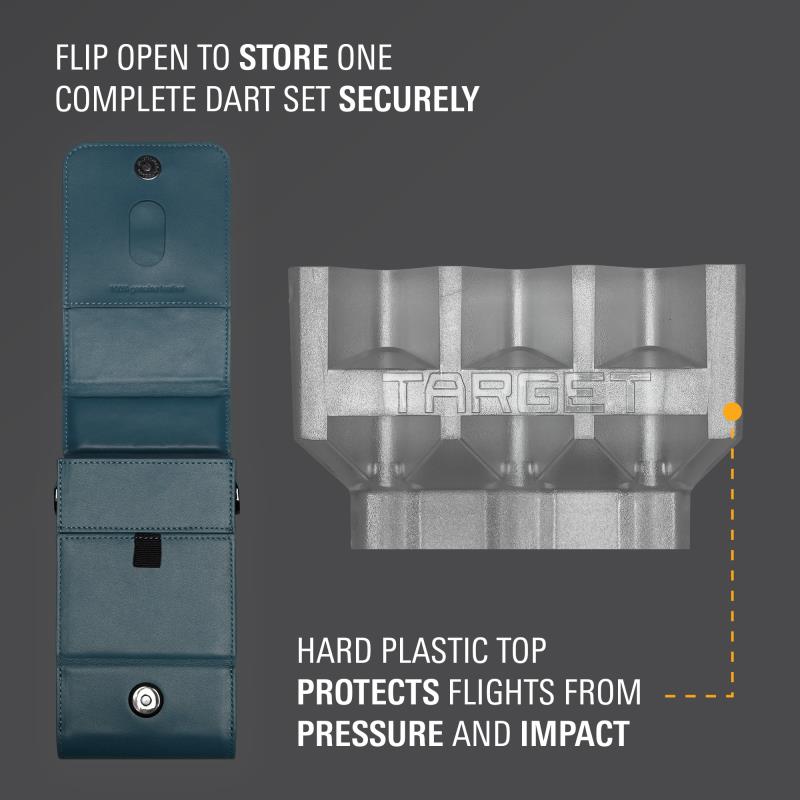 Das Target Japan Milli Case in Marine Blau ist eine hochwertige Darttasche aus echtem Leder – gemacht für Spieler, die ihr Setup sicher, organisiert und stilvoll transportieren möchten. Ein verstärkter Hartplastik-Deckel schützt deine Flights zuverlässig vor Druck und Stößen, während die durchdachte Innenaufteilung Platz für ein vollständig montiertes Dartset sowie wichtiges Zubehör bietet.