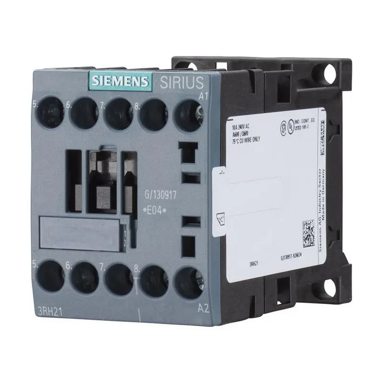 The SIRIUS 3RH2 auxiliary contactor is designed for switching control signals in the control circuit. The SIRIUS 3RH2 auxiliary contactors feature standardized terminal designations and a reliable, time-saving connection system. Output multiplication allows several auxiliary circuits to be switched simultaneously. All contacts are available with positively driven operation for safety applications, including SUVA versions.