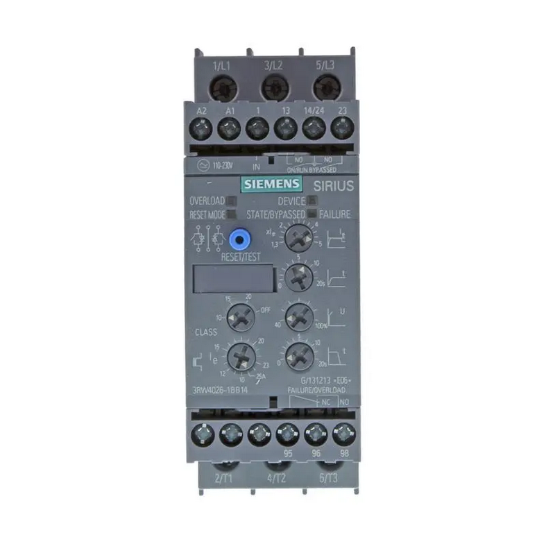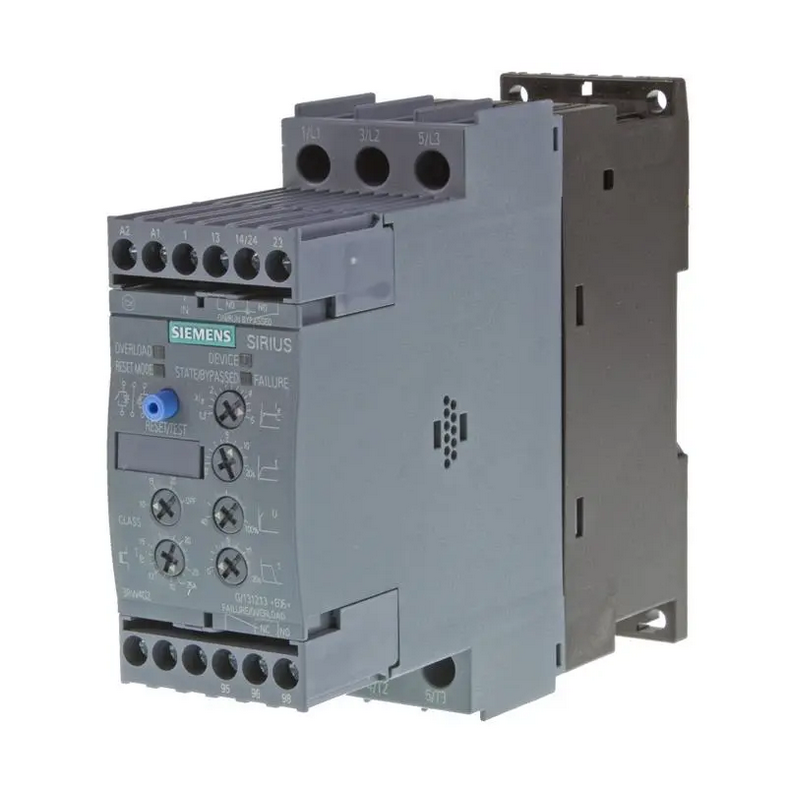 The SIRIUS 3RW40 soft starter is designed for standard applications requiring the smooth start-up and run-down of three-phase asynchronous motors. It provides stepless starting, reduces current peaks, prevents mains voltage fluctuations during start-up, relieves the power supply network, reduces mechanical stress in the drive system, and offers significant space and wiring savings compared with star-delta starters and frequency converters. It also ensures maintenance-free switching and very easy operation.