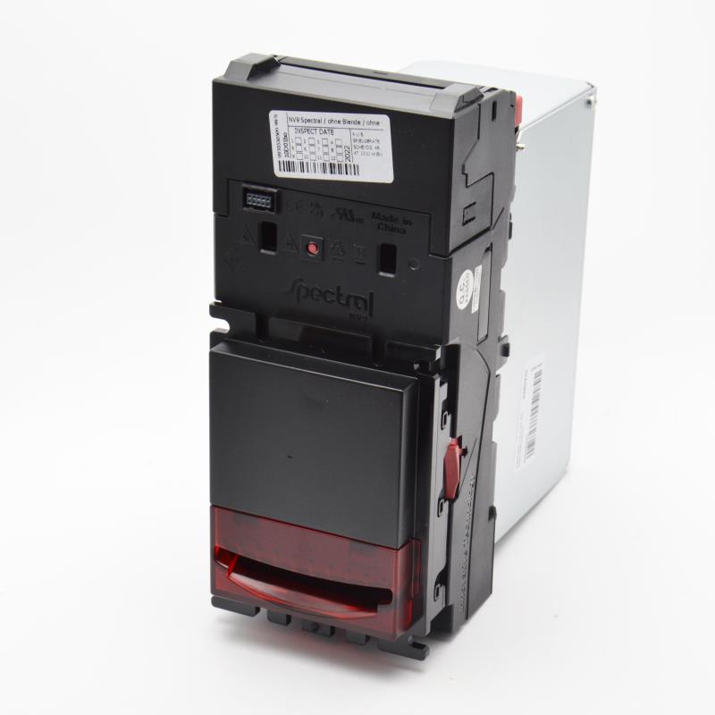 The NV9 Spectral is a highly secure and technologically advanced banknote validator, offering casino level security at a mid-range price. State of the art spectral sensors provide high resolution imaging, scanning 1.28 million data points to authenticate the validity of notes. This versatile banknote validator can be mounted horizontally or vertically, with cashbox and bezel options to suit all applications and a micro SD card for data logging.